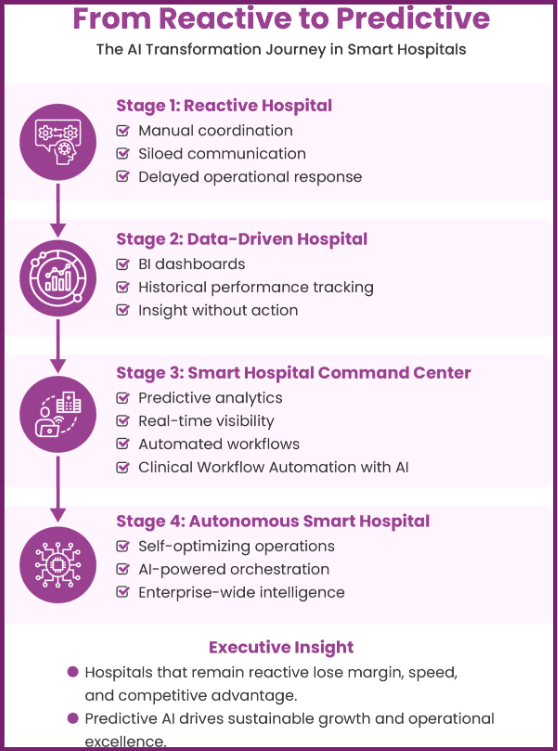 When organisations implement clinical workflow automation with AI, they close the gap between insight and execution. The result is not just operational improvement—it is strategic transformation. For hospital executives, the message stands clear: an AI-powered command centre in healthcare no longer represents innovation for the future. It defines the operational backbone of the modern smart hospital.
