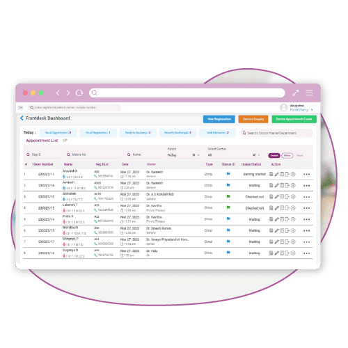 Manage all your outpatient process including patient registration, appointment scheduling queue/token management, and hospital billing with high-performance online general practice management software.