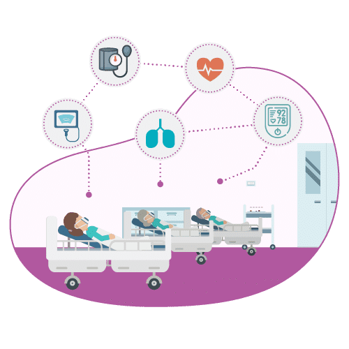 View all of your inpatient vitals from our vital monitoring command center, toggle on or off patients who require continuous monitoring, and use our automated nurse alerting system to provide rapid patient care.