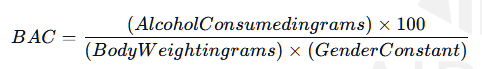 BAC is typically measured as a percentage. A common formula used to estimate BAC is the Widmark Formula: