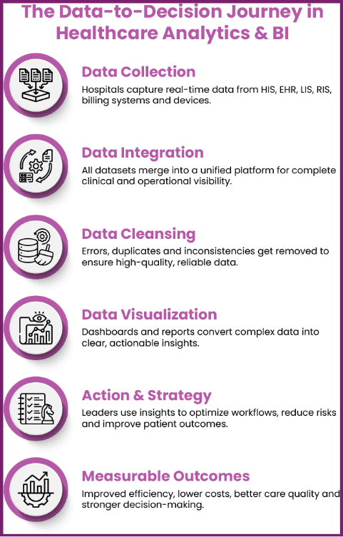 Healthcare providers generate massive volumes of clinical, operational and financial data every day. To turn this complexity into clarity, hospitals rely on healthcare analytics software and healthcare business intelligence solutions that transform raw information into strategic insights. The combined power of healthcare analytics & BI helps healthcare leaders improve outcomes, strengthen efficiency and support data-driven growth.