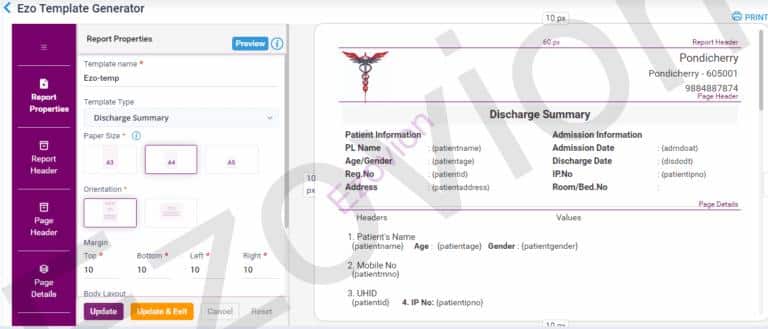 "Discharge Summary" can be auto generated with one click in any format desired by the Hospital.