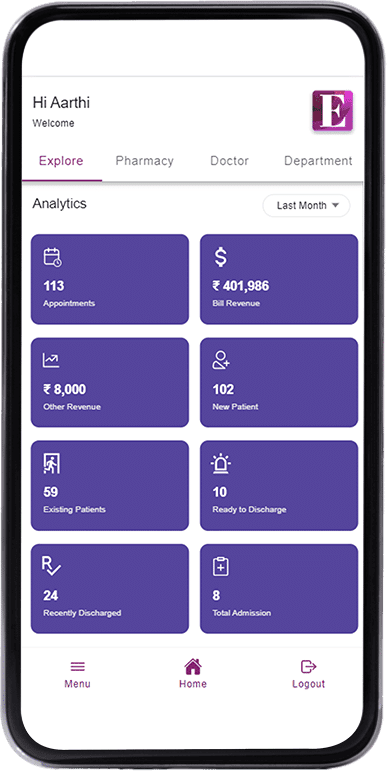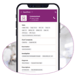 Ezovion EHR in hospital mobile app offers a user-friendly interface to standardize and store patient health records in a secure, practice-friendly manner.