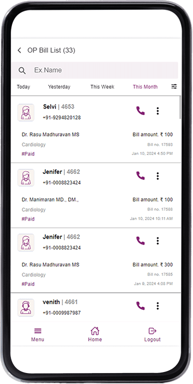 The outpatient billing option helps you add unlimited services and manage outpatient billing costs department-wise.