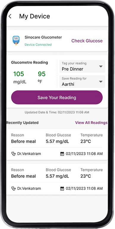 Are you a diabetic and tired of keeping manual blood glucose records? Try Ezovion vital device integration to track and keep your doctor informed of your blood glucose levels.