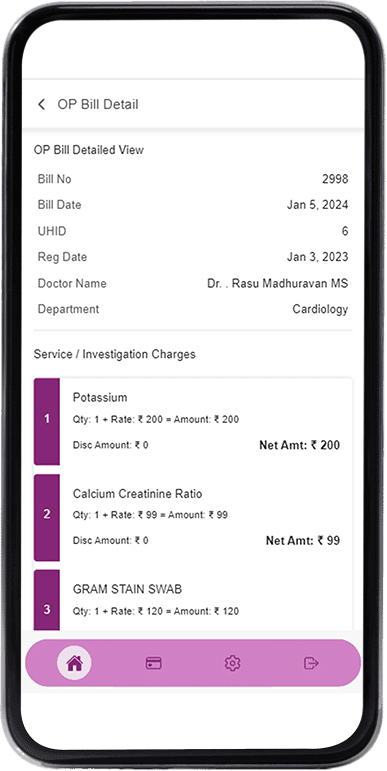 Patients can access their hospital visit details in an easy-to-understand dashboard on our mobile app.