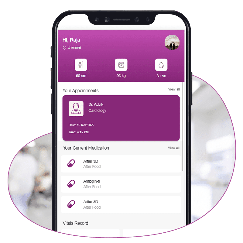 View your prescription, lab reports and radiology reports with images. You can connect anytime with your doctor via teleconsultation feature.