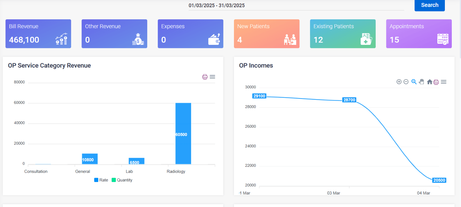 Monitor key performance indicators (KPIs) such as patient inflow, appointment trends, and treatment efficiency to optimise workflow and resource allocation.