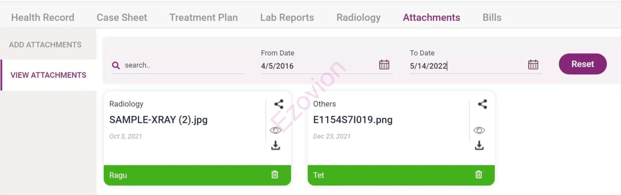 Medical images and scans can be added to each patient’s medical record. We support a wide range of radiology image file formats, including DICOM file formats.