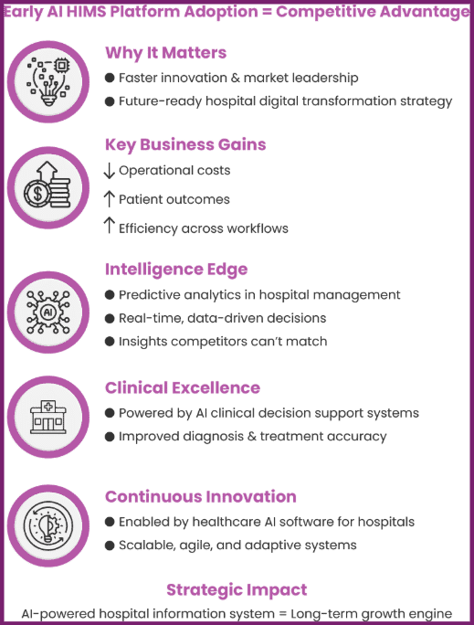 A unified AI HIMS platform connects clinical, operational, and administrative layers. This integration ensures that innovation directly improves care delivery instead of remaining a standalone experiment.